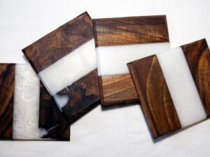Handmade Walnut Epoxy Coasters: Resin Inlay, Set of 4